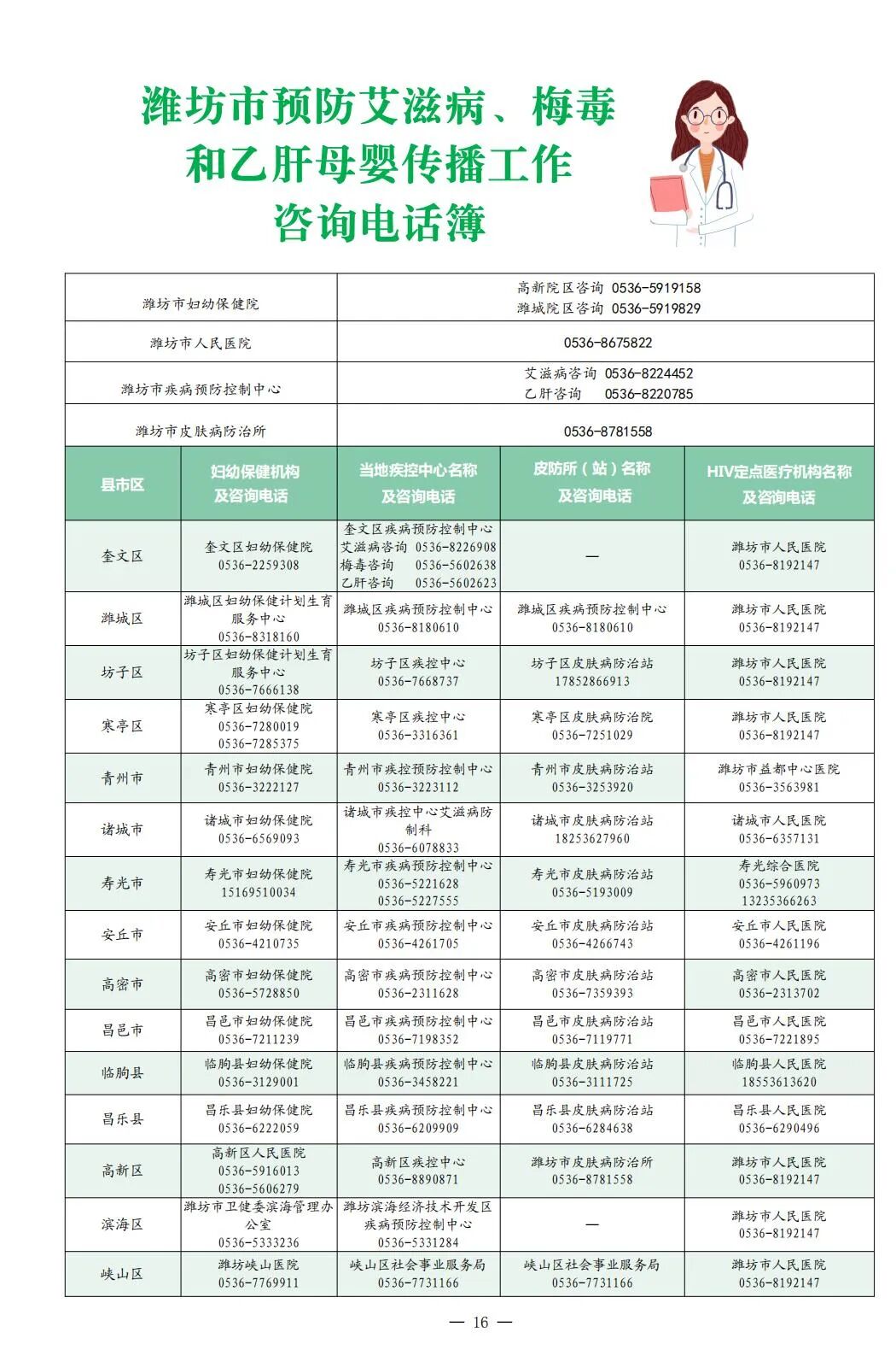 【健康科普】潍坊市预防艾滋病、梅毒和乙肝母婴传播便民手册