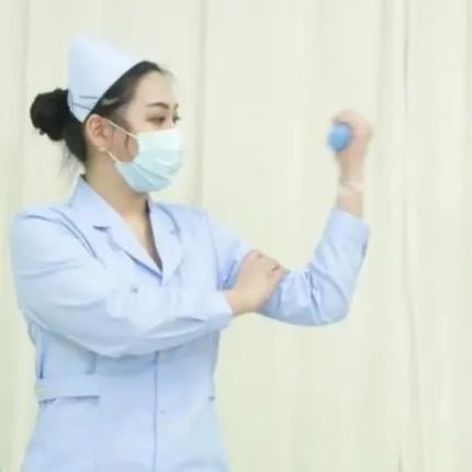 ③促进动静脉内瘘血管充盈扩张,便于穿刺,日常可通过手握橡胶圈曲臂运动,或着上臂加压捏握橡胶圈运动等方式进行内瘘锻炼。内瘘侧手臂握橡胶圈,抬起前臂向上臂靠近,也可以使用压脉带或另一只手进行上臂加压,根据自身最大握力,每次5秒,每组10-15分钟,每天三组。