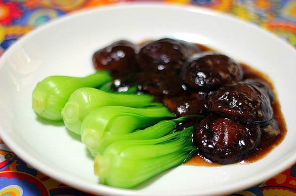 做法:香菇泡发切块,大蒜切粒;油菜加盐焯熟摆盘;热油爆香蒜粒,加香菇翻炒,加生抽、耗油和适量水,待香菇熟后加水淀粉搅拌即可。
