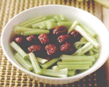 做法:芹菜、红枣一起加水放入炖锅,以小火炖煮,放入冰糖调味,饮用时喝汤弃渣。