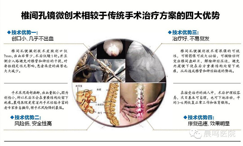 与传统手术方式相比,椎间孔镜技术与其相比具备创伤更小,出血更少,麻醉更简便,术后恢复更快及经济负担更轻等明显的优势。目前,我院已可开展该项技术,并通过该手术为患者解除了病痛,欢迎广大患者来我院咨询、治疗。