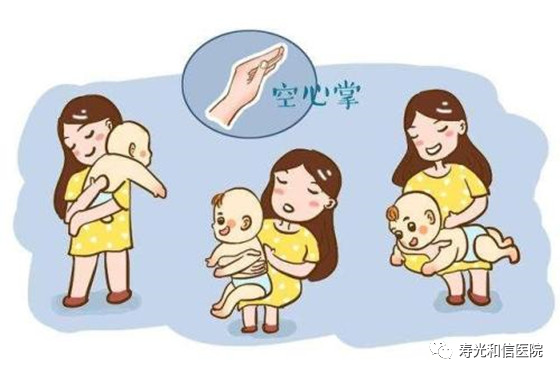 喂奶后将宝宝轻轻竖抱趴在抱者左肩上或横抱宝宝,以空心掌一下一下有节奏地在宝宝背部从腰部以上的部份往上轻拍(不要太轻,有一定力度)。