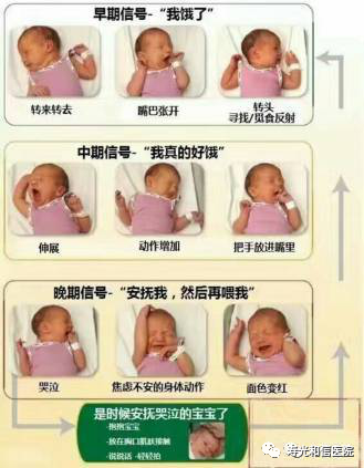 宝宝会通过一些信号告诉妈妈我饿了,妈妈们要及时捕捉这些信号,满足宝宝的需求。