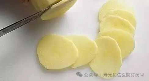 ②土豆片外敷内瘘,土豆渗出的液体中含有的龙葵素具有解痉消炎、减少渗出、消热解毒、消肿散瘀的作用,因而可防止血管通路并发症,延长动静脉内瘘的使用寿命。有消肿或者消炎效果。土豆片不用削皮切薄片,厚度约0.1-0.2cm,为了避开针眼中间位置挖个孔,先热敷5分钟,再覆盖土豆片,土豆片干燥后就继续换土豆片,每次15分钟左右,敷完等皮肤干燥后,擦拭干净。