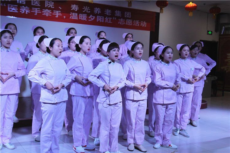 在“5.12国际护士节”即将来临之际,和信医院组织30余名护理人员走进寿光养老集团,举办“医养手牵手,温暖夕阳红”志愿活动,为老人带来健康宣教和文艺演出。