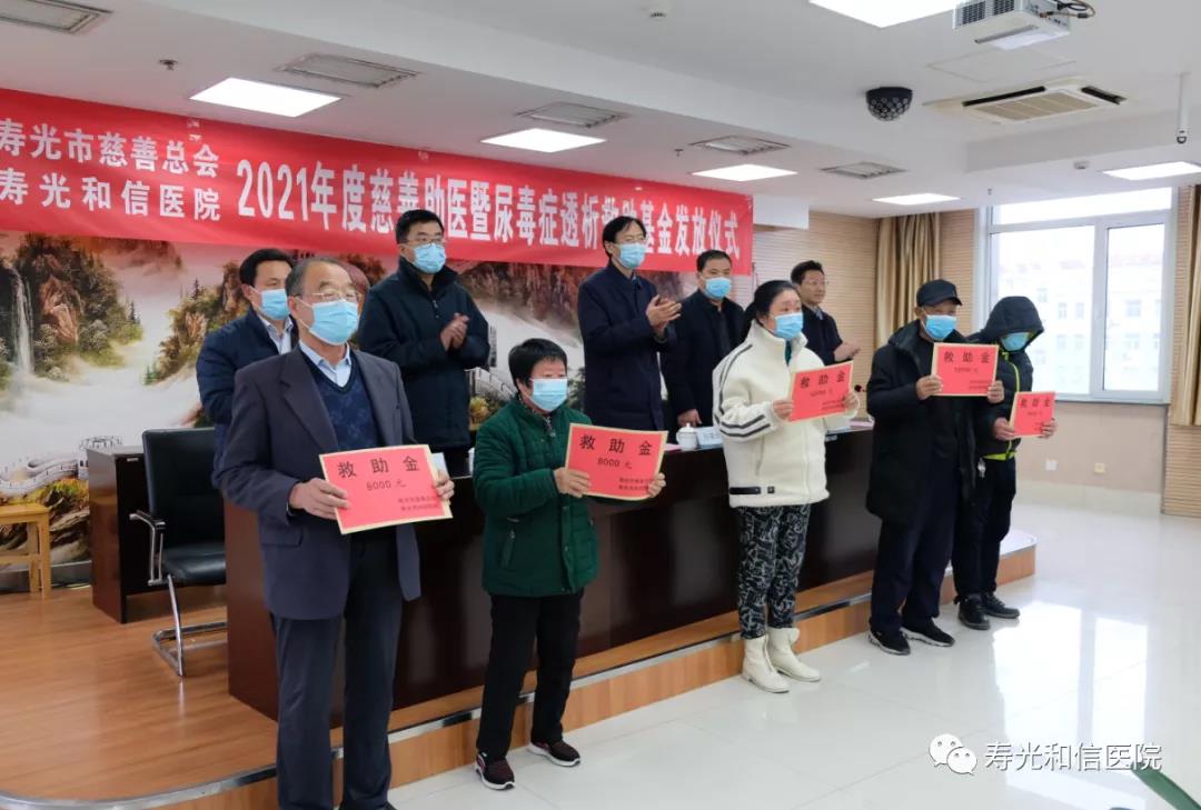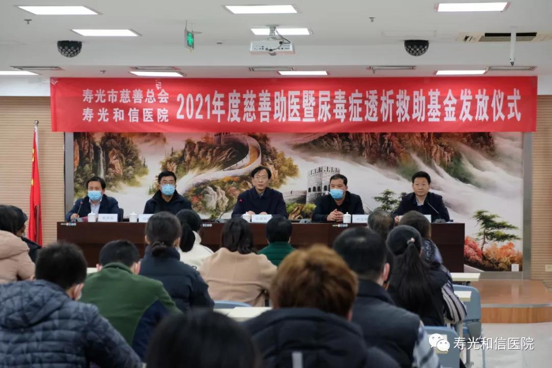 1月26日,寿光市慈善总会、寿光和信医院“慈善助医”暨“尿毒症透析救助”活动救助金发放仪式在寿光和信医院办公楼四楼会议室举行。