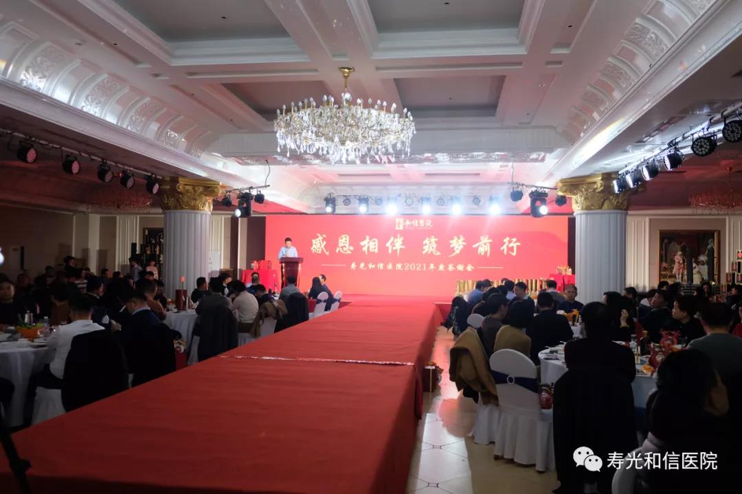 12月24日,寿光和信医院在蓝海大酒店组织举办2021年度答谢会。党支部书记、院长信维亮致辞。各业务单位,外聘专家,医院各科室负责人及护士长以上人员出席会议。