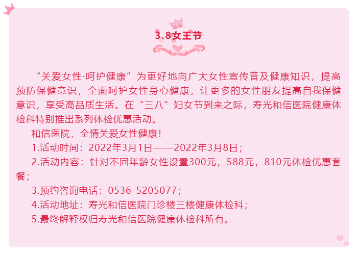 “关爱女性·呵护健康”——寿光和信医院健康体检科妇女节体检优惠活动