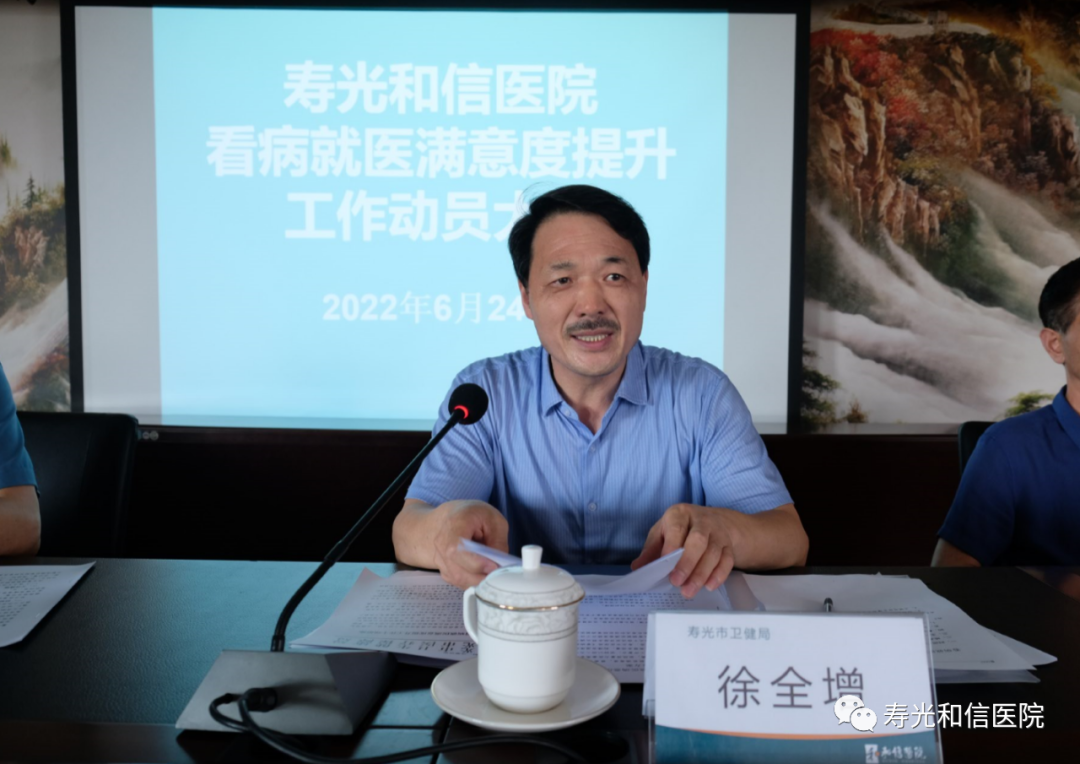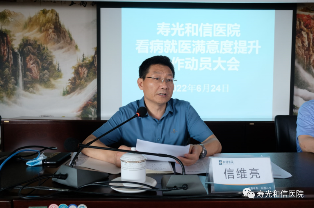 6月24日,寿光和信医院在门诊楼四楼会议室召开看病就医满意度提升工作动员大会。卫健局领导徐全增出席会议并讲话。医院党支部书记、院长信维亮,各科室负责人、护士长,行政科室全体人员参加会议。