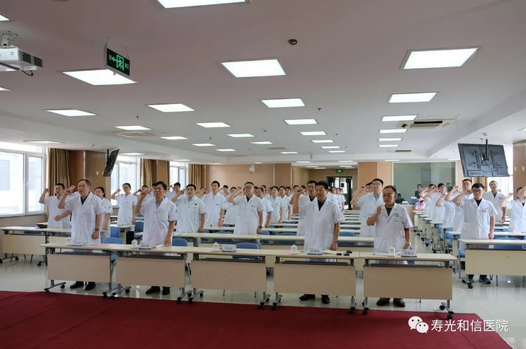 “医”心向党,踔厉奋进。8月18日下午,寿光和信医院在门诊楼四楼会议室组织举办第五个中国医师节庆祝活动。寿光市卫健局党组书记、局长李群成,和信医院党支部书记、院长信维亮,副院长唐华卿,专家代表刘儒森、刘立群,以及全院医师参加了活动。医务科主任郎继军主持活动。