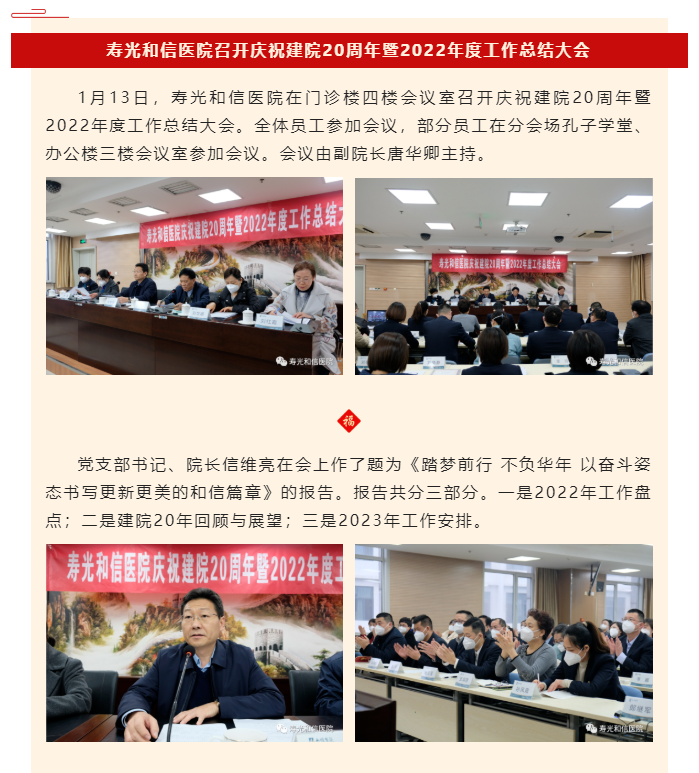 寿光和信医院召开庆祝建院20周年暨2022年度工作总结大会