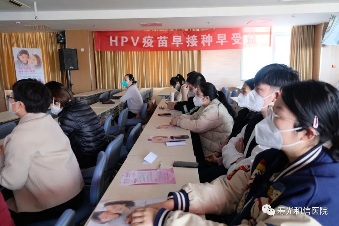 “什么时候接种HPV疫苗最好呢?只要在疫苗应用年龄范围内接种,什么时候都不晚……”2月11日下午,寿光和信医院在门诊楼四楼会议室举办“HPV(人乳头瘤病毒)疫苗早接种早受益”健康知识讲座。活动邀请潍坊市人民医院妇科专家刘玉珍教授以及寿光市疾病控制中心任坤岭主任为100余名受种者普及了宫颈癌防治知识。
