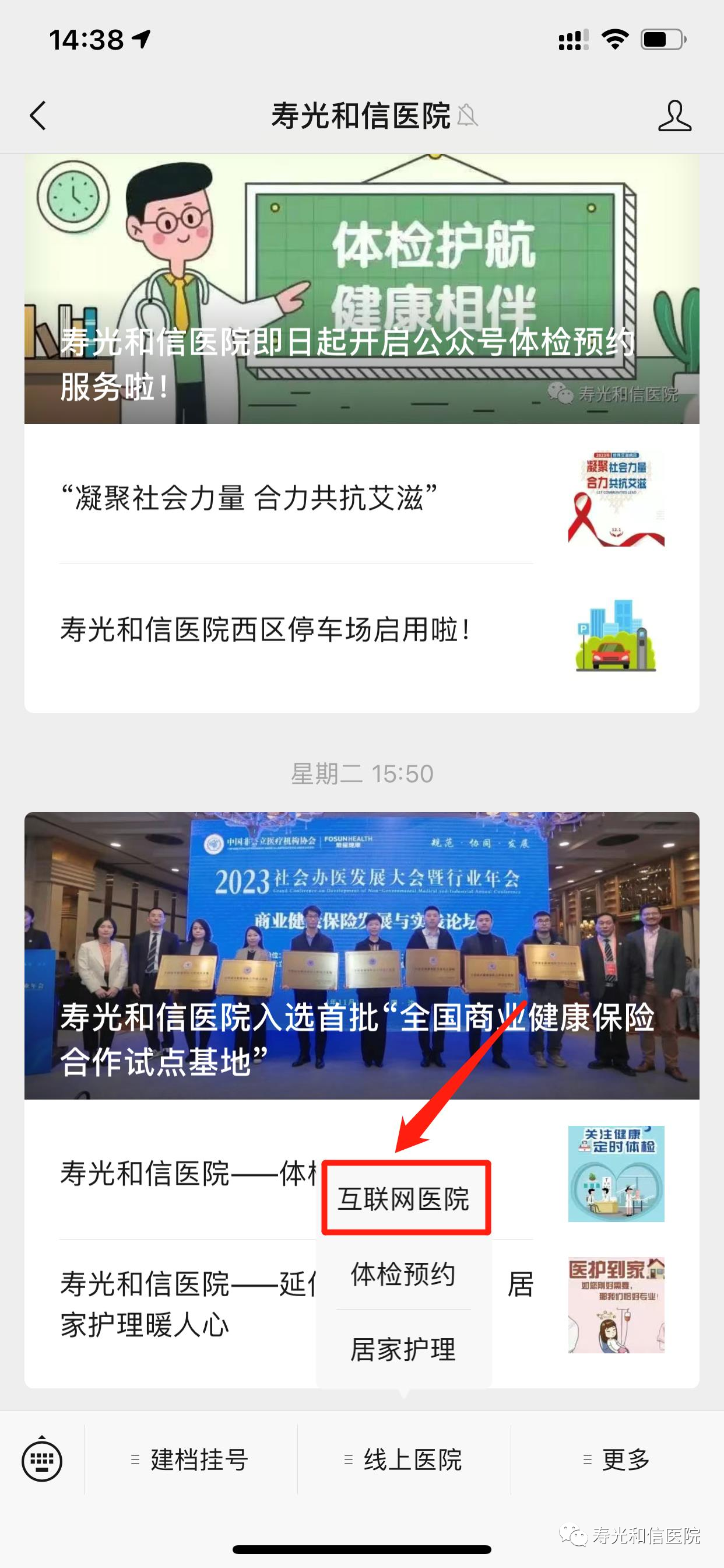 第二步:首页→线上医院→互联网医院。