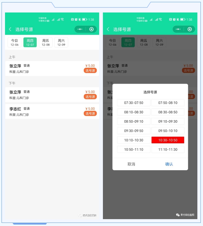 第四步:以“预约挂号”为例,选择科室、医生及预约时间。