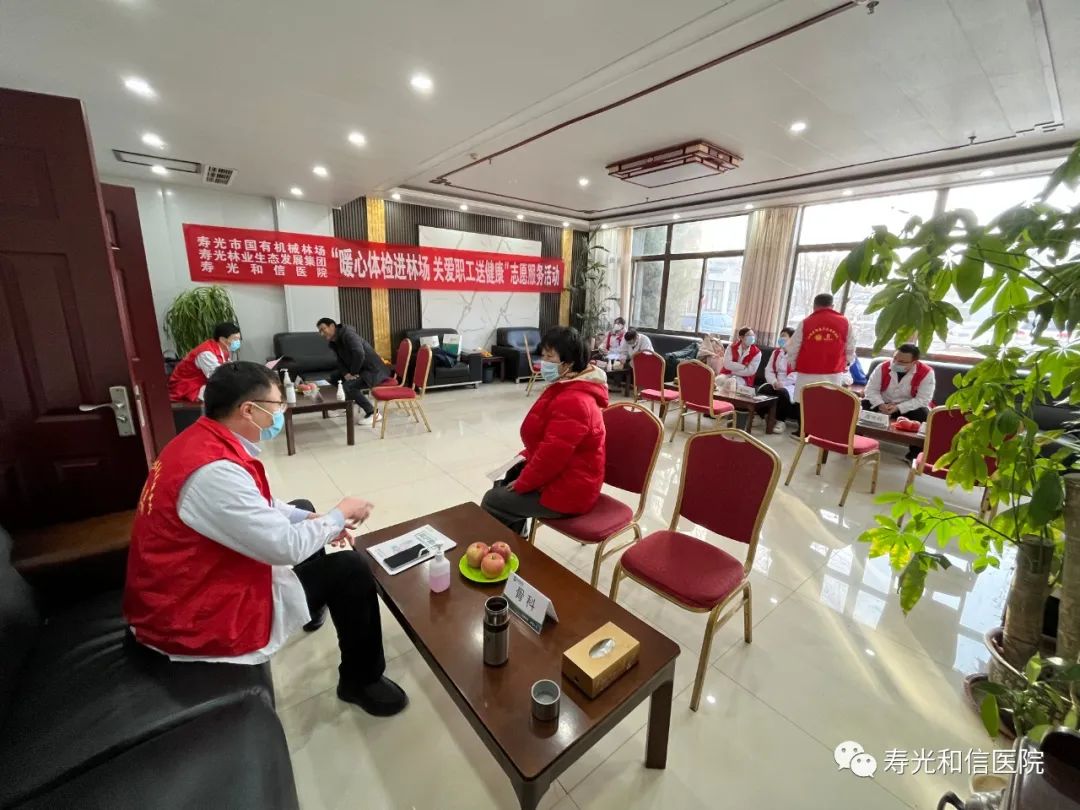 为方便职工就医,增强职工健康保护意识,倡导良好的生活方式,切实保障林场职工的身体健康,12月7日,寿光和信医院与寿光市国有机械林场寿光林业生态发展集团联合开展了“暖心体检进林场 关爱职工送健康”志愿服务活动。志愿者走进林场为职工进行免费健康体检和健康诊疗服务。