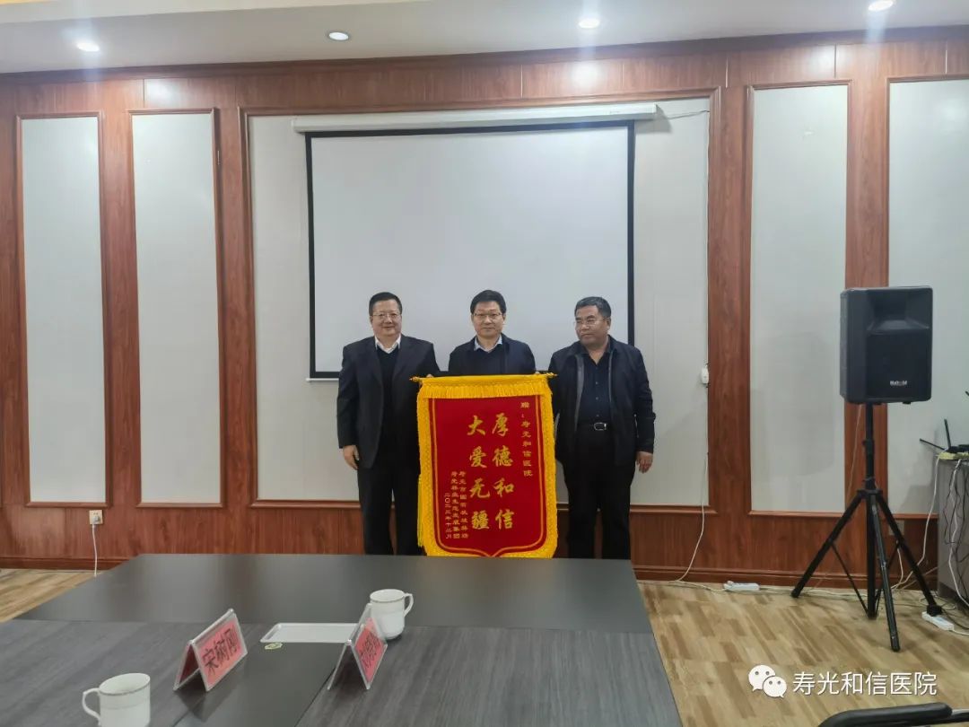 体检服务给职工带来了实实在在的关爱,让大家能够及时了解自身身体状况,有针对性地做好疾病预防,做到有病早发现,无病保健康,全面提升了职工的幸福感、获得感、归属感。活动结束后,寿光林业生态发展集团国有机械林场联合党委书记,寿光市国有机械林场场长王宏志与寿光和信医院党总支部书记、院长信维亮进行了座谈,对此次义诊体检活动进行了总结,并赠送上了一面写有“厚德和信 大爱无疆”的锦旗。