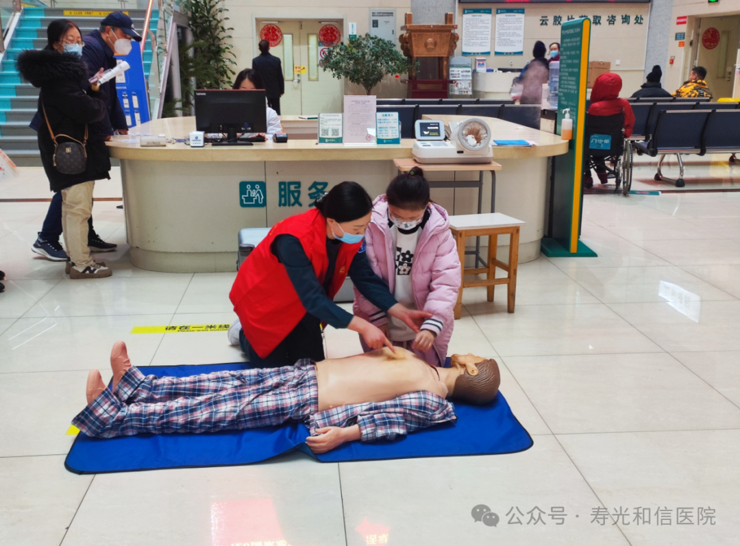 “急”时守护,“救”在身边,1月20日,寿光和信医院开展了"120国家急救日"倡议活动,并在就诊大厅组织“人人学急救,急救为人人”公益培训。