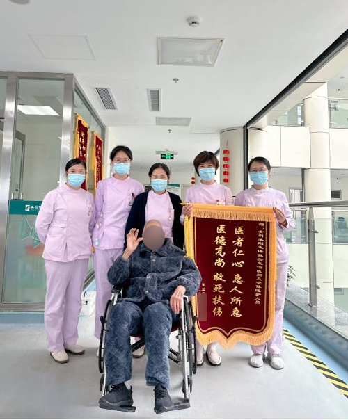 出院前,老人“亲自”送上了一面锦旗,表达了他的感激之情。大家合影留念间,王爷爷脸上洋溢着孩子般灿烂的笑容。