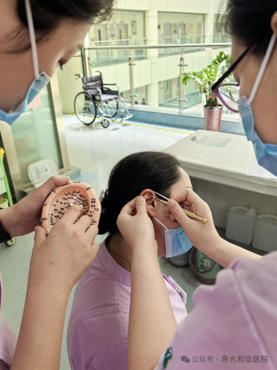 6月6日,中医科护理人员组织学习了耳穴压豆——喘憋症状常见穴位,现场进行了示教及操作。通过实践操作,让科室护士对耳部穴位又有了更深的了解。
