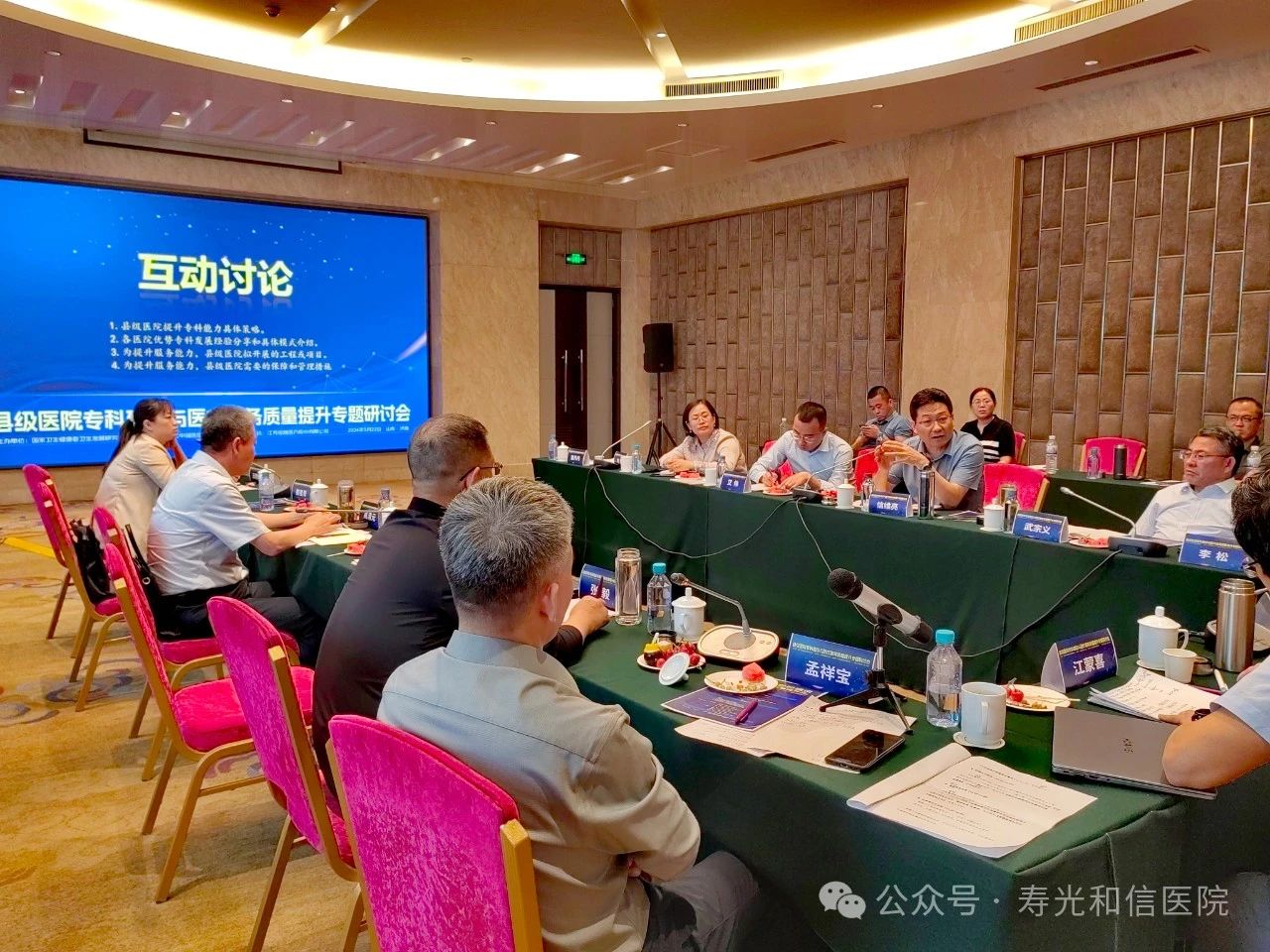 会议由国家卫生健康委卫生发展研究中心主办,《中国医院院长》杂志承办。山东省卫健委医政处副处长杜静介绍了山东省医疗质量整体情况介绍。国家卫健委发展研究中心医院管理与改革研究室主持工作的副主任、研究员江蒙喜就《县级医院如何抓专科建设工作》进行了讲解。信维亮院长以寿光和信医院为例,阐述了民营医院的发展定位、优势,以及发展中存在的问题,并就县级医院提升专科能力具体策略等与与会人员进行了互动讨论。