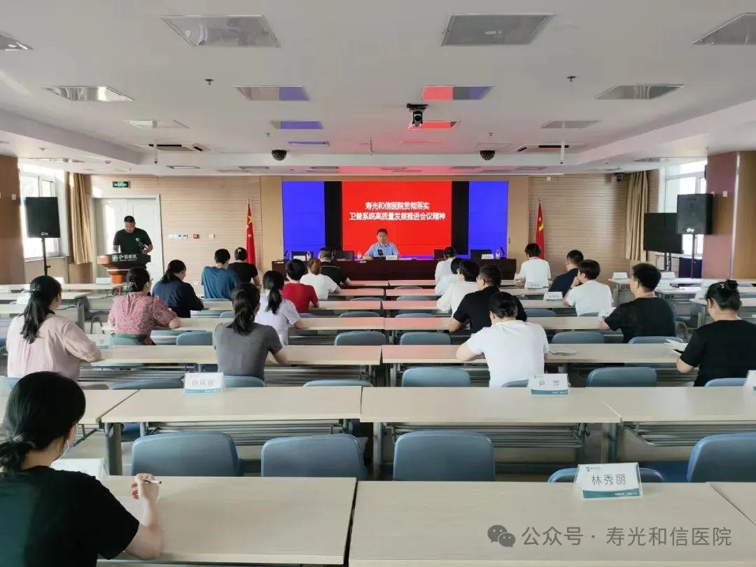 8月9日,寿光和信医院召开科室负责人以上人员会议,传达贯彻卫健系统高质量发展推进会议精神。