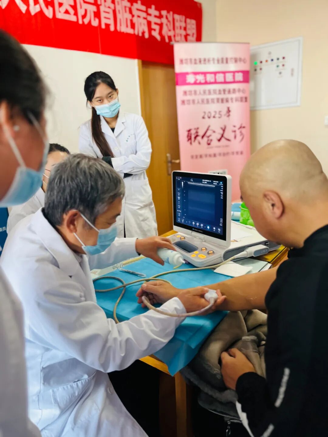 清晨的阳光洒进透析室,这里比往日更添了一份温暖与忙碌。来自潍坊市人民医院血液透析室专家早早来到现场,与我院血液透析室的医护团队紧密协作,共同为前来参会的透析患者进行了一场全面、细致的动静脉内瘘筛查与评估。