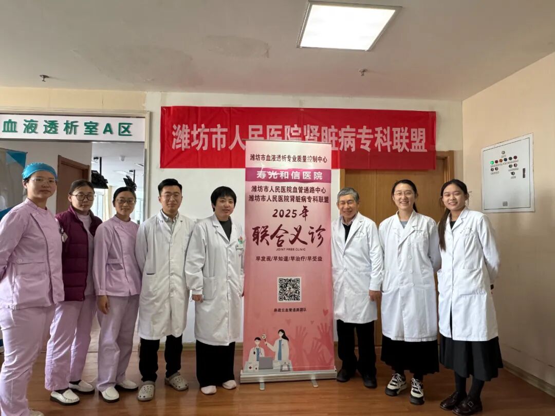 在尿毒症患者的透析治疗中,动静脉内瘘被誉为不可或缺的“生命线”。它的通畅与健康,直接关系到透析的质量与患者的生命安全。为了将更优质的医疗资源与服务送到患者身边,2025年11月29日,寿光和信医院血液透析室与潍坊市人民医院血管通路中心专家团队强强联合,成功举办了一场以“守护生命线,传递健康”为主题的动静脉内瘘专项会诊活动。
