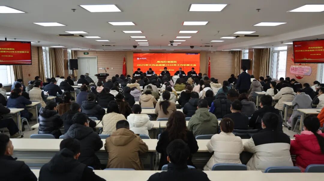 2月5日下午,寿光和信医院在门诊楼四楼会议室召开2025年度工作总结暨2026年工作部署大会。大会全面回顾了过去一年医院在复杂严峻形势下取得的显著成绩,科学谋划了新一年高质量发展的目标任务与行动路径。党总支书记信维亮作主题工作报告,党总支副书记李连卫宣读有关人事任职及表彰决定。大会由刘伟光院长主持,医院领导班子成员及全院干部职工通过主会场与分会场视频同步参会。