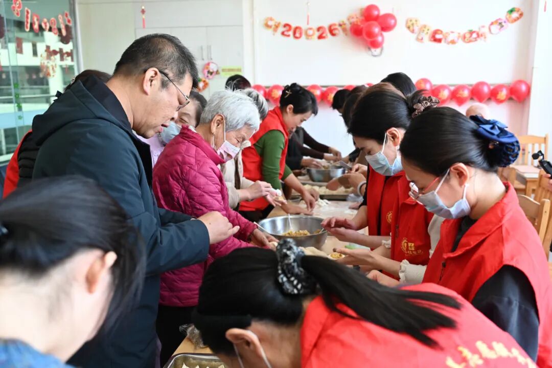 小年至,年味浓,最暖人间是团圆。2月10日,寿光和信医院康养中心内暖意融融、笑语盈盈。中心联合医院志愿者团队,携手长者、家属及医护人员,共同举办“团圆饺香暖新春”包饺子公益活动,以志愿服务传递温暖,以公益之心陪伴长者,喜迎新春,共叙温情。 活动现场,桌案整洁、馅料丰盈。长者与家属围坐一起,手中饺皮翻飞,笑语不断;志愿者们忙碌其间,或协助拌馅,或细心陪伴,或温暖互动,有参与活动的小志愿者还动手写下新年的“福”字,营造新年的氛围,将公益服务的真诚融入每一个细节。医护人员则默默守护,随时关注长者身体状况,让温暖与安心同在。大家携手合作,其乐融融,一个个饱满的饺子承载着欢声笑语、倾注着孝亲之情,更包裹着对长者健康长寿、幸福安康的美好祝愿。 信维亮书记来到活动现场,与长者们亲切交谈,细致询问大家的日常生活与活动体验,嘱咐众人注意安全、量力而行,并送上小年真挚的祝福。他表示,康养中心始终坚守医养结合初心,依托寿光和信医院专业医疗资源,以细致照料、科学康复、多彩活动,守护长者身心健康,让每一位长辈在这里住得安心、过得舒心、活得有尊严、享得有品质。 热气腾腾的饺子出锅后,大家围坐品尝,鲜香暖胃、温情暖心。一位长者笑着说:“在和信康养过小年,就像在家里一样热闹,有人陪、有人疼,心里特别暖。 一碗饺子,一份牵挂;一声问候,一片真情。寿光和信医院康养中心将持续以温度服务、专业照护,把关爱融入日常,把温暖送到心间,用医养守护夕阳红,用陪伴温暖晚年时光。